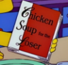 Description: screenshot from the simpsons of the cover of the fake book "Chicken Soup for the Loser"